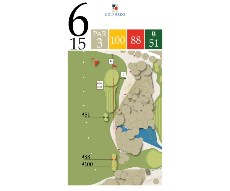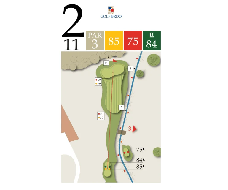 Naravno igrišče sestavlja 9 lukenj,  PAR 28 (PAR 56), od katerih je osem lukenj PAR 3 in ena luknja PAR 4, kar pomeni, da je igrišče primerno za igralce vseh stopenj. Izkušeni igralci lahko uživajo v izzivih, ki jih ponuja igrišče, medtem ko se začetniki lahko učijo osnov. Razdalje med luknjami so krajše in ne zahtevajo ogromno golfske kondicije.